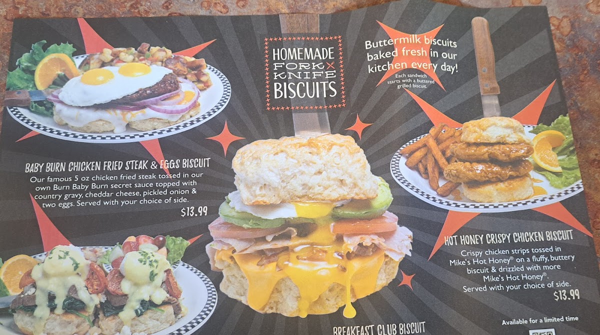 10 oz of seasoned steak served with 3 eggs & 2 housemade biscuits.